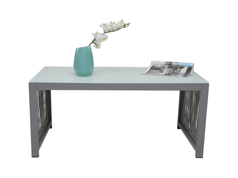 Specifiche | frame in alluminio con corda intrecciata, 4pc in totale; Loveet: L70*W132*H69CM, sedia singola da 1 pc: L70*W70*H69CM, 2 pcs Tavolino: L100*W50*H46CM, vetro bianco temperato da 5 mm, 1pc |