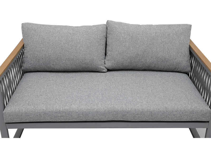 Ne abbiamo due la nostra fabbrica. Quindi possiamo offrire il prezzo e Costume KD Design Giardino mobili da esterno Furni intrecciati di divano set con cuscino di sedile, legno sintetico sul bracciolo YQC-2786 direttamente.