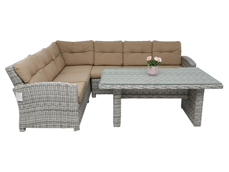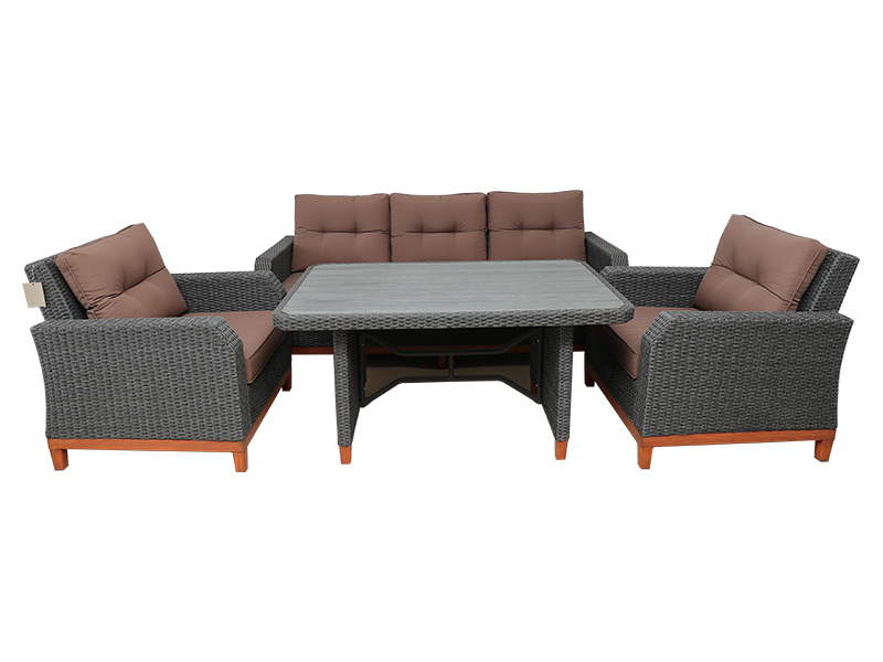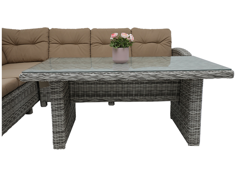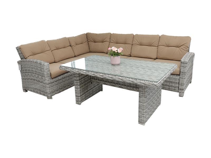 Tubo di alluminio Mezzo rotondo PE Rattan, cuscino di sedile da 10 cm con spugna all'interno e cuscino posteriore da 10 cm con riempimento di fibre all'interno, tessuto da 230 g; sedia a tre posti: L80*W190*H77CM, 1pc; sedia a 3 posti per braccioli singoli: L80*W160*H77CM, Amrest è KD, 1pc; Tabella: L140*W80*H63CM, vetro trasparente temperato da 5 mm, KD, 1pc | 142,5*18*83cm/un tavolo in un cartone; 192*99*83cm/altri in un cartone | 36SETS |
